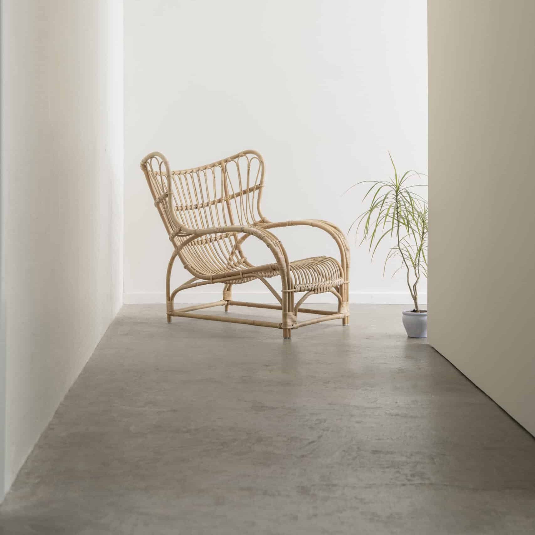Design : Viggo Boesen. Fauteuil en rotin naturel dans la gamme ‘Icons’. Coussin assise en option. Repose-pieds disponible. Entièrement fait main en Indonésie. Superbes finitions. Existe en version alu pour un usage extérieur. Nous contacter.